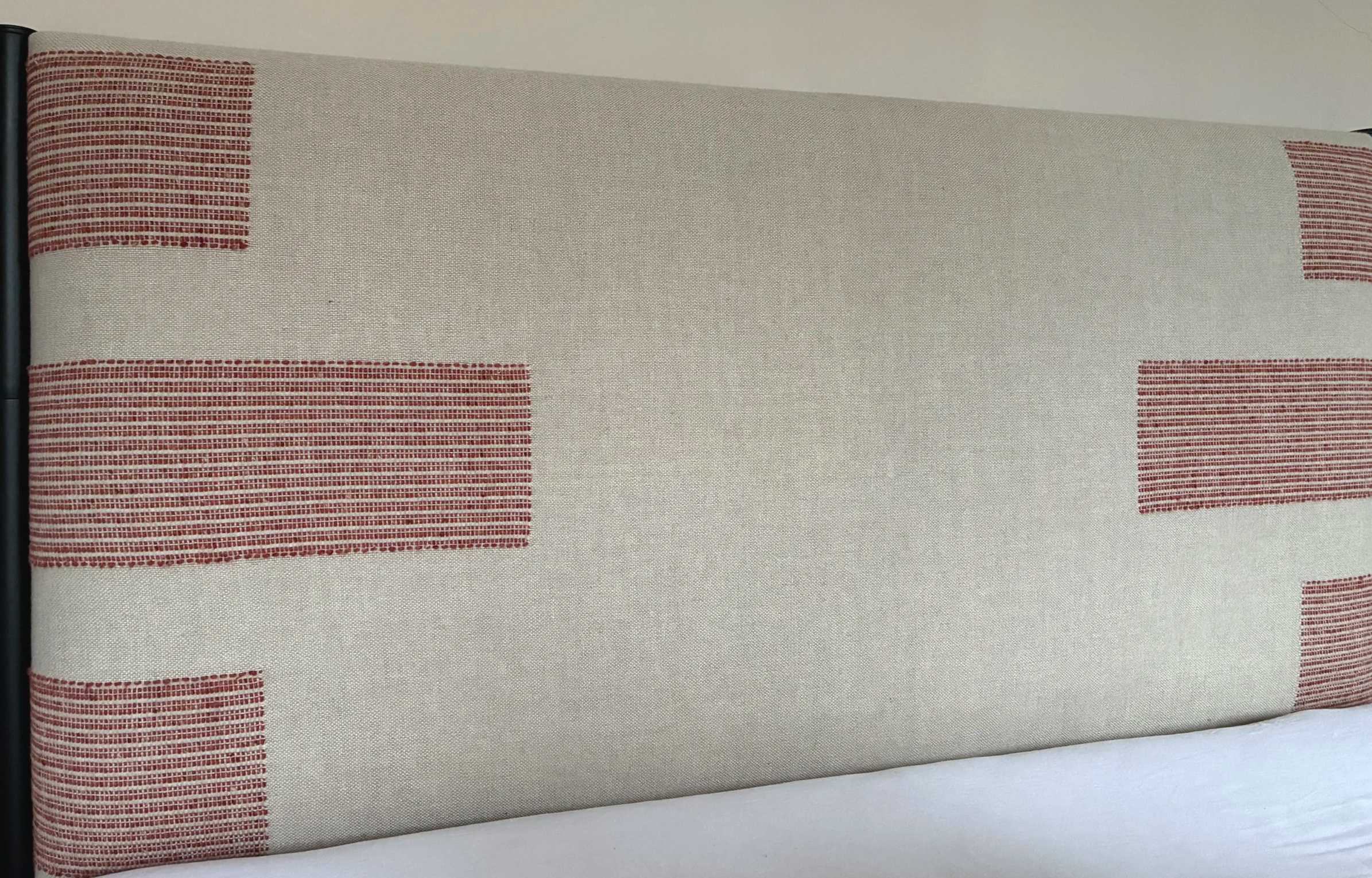 Bespoke headboard; handwoven in lambswool, organic cotton and Donegal tweed.
